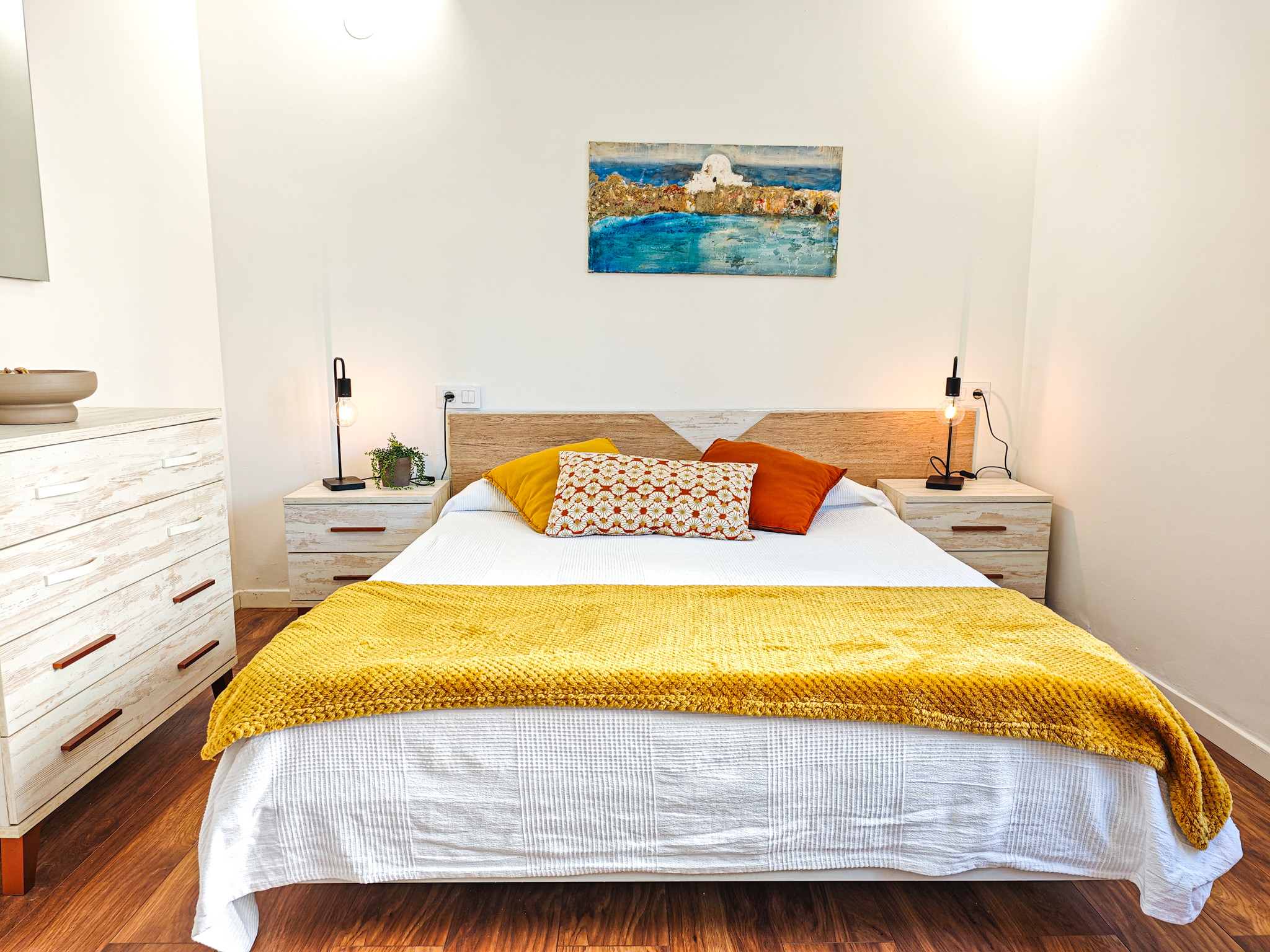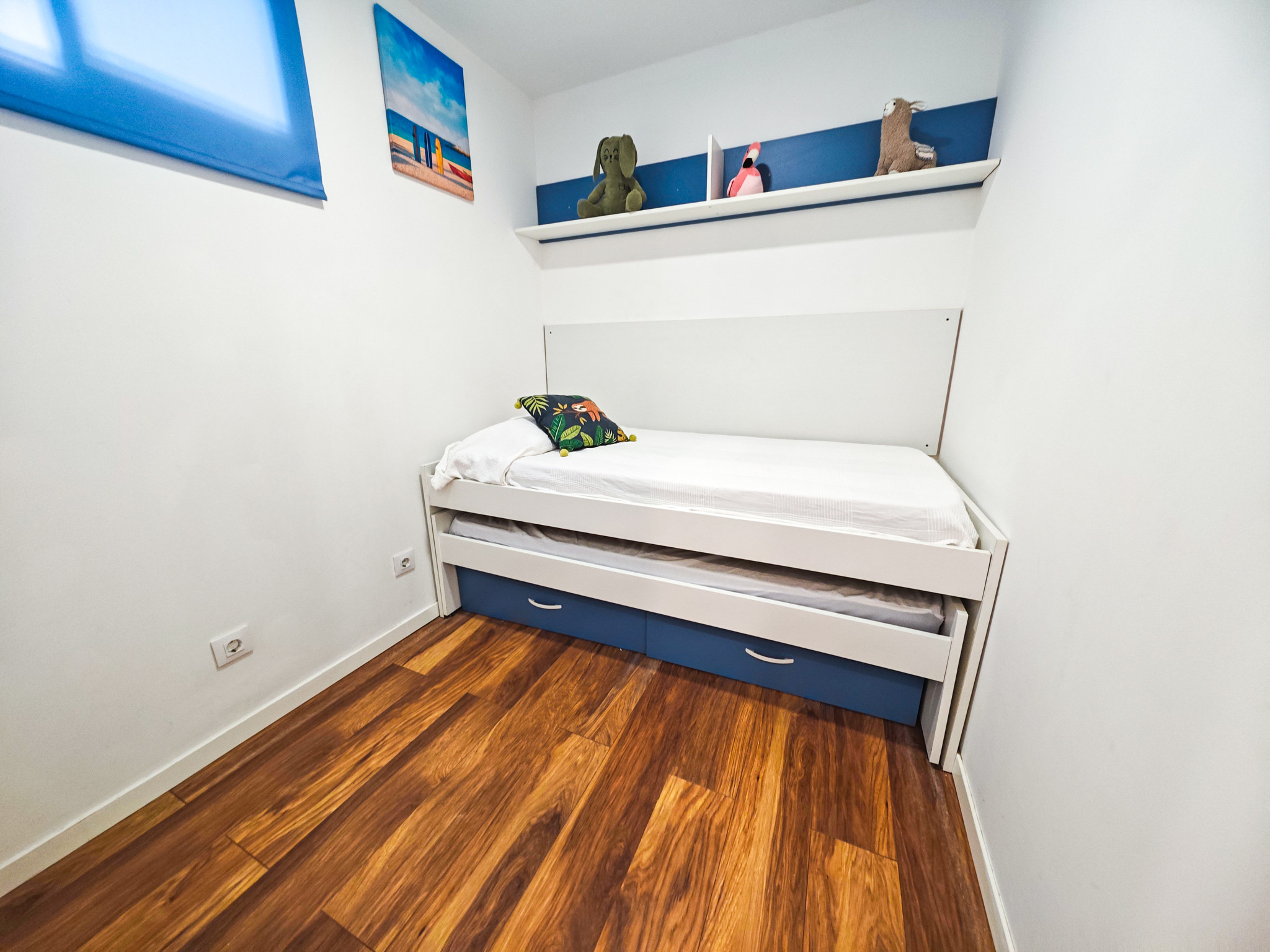 Este acogedor piso cuenta con una habitación doble + 1 habitación "camarote" con 2 camas pero sin ventanas, un baño completo con ducha, una cocina moderna y bien equipada, y un amplio salón-comedor. Además, el apartamento está equipado con aire acondicionado para garantizar tu comodidad en los días calurosos, y dispone de parking incluido.