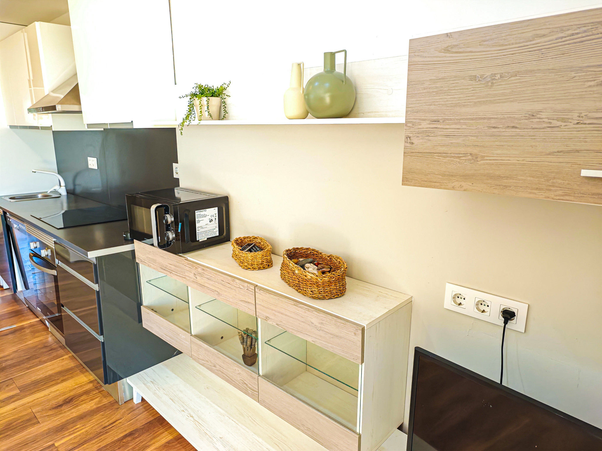 La ubicación y el apartamento muy acogedor con mobiliario minimalista bonito y muy práctico