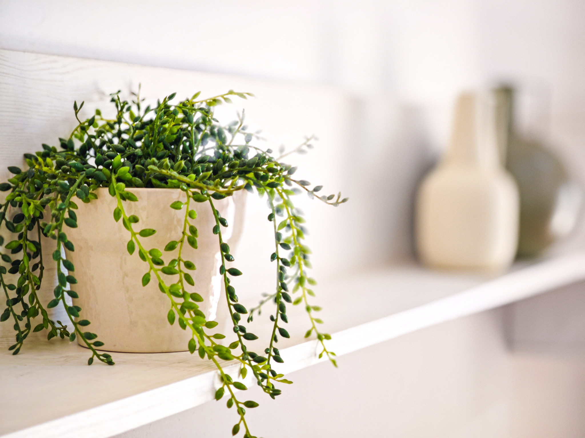 une tablette pour poser les affaires sous le miroir dans la salle de bain.