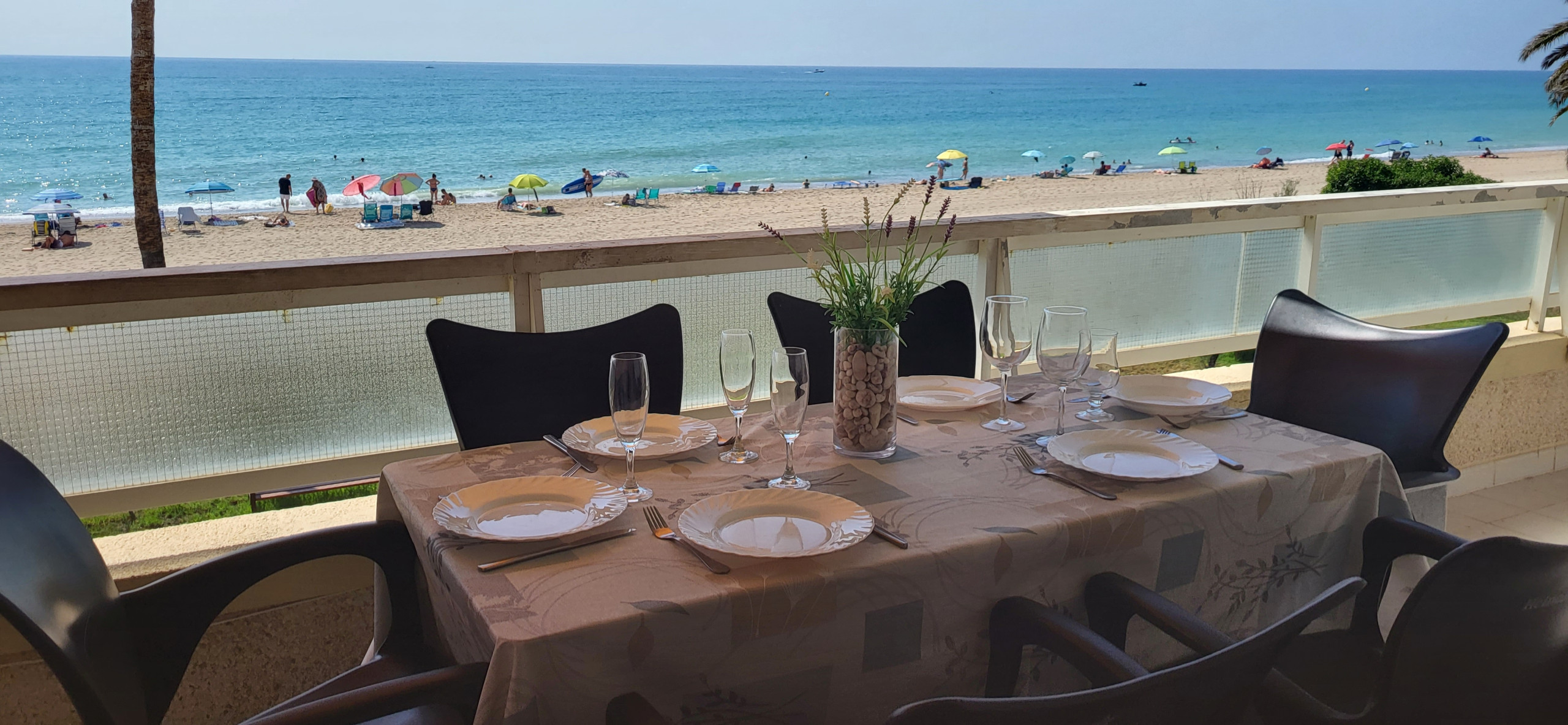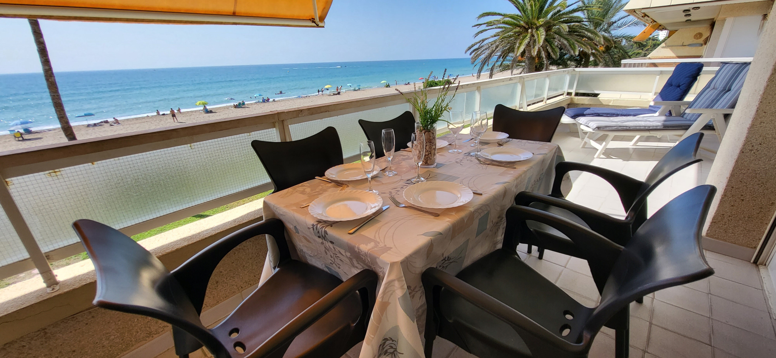 Apartamento de alquiler vacacional en Miami Playa, para 4-6 personas, con magnífica situación a pocos pasos de la playa de arena, en la tranquila urbanización residencial Parque de Mont-roig en primera línea de playa, con restaurante, bar-cafetería y chiringuito de playa, a 1 km del centro de Miami Playa, en una zona ideal para sus vacaciones en familia junto al mar.