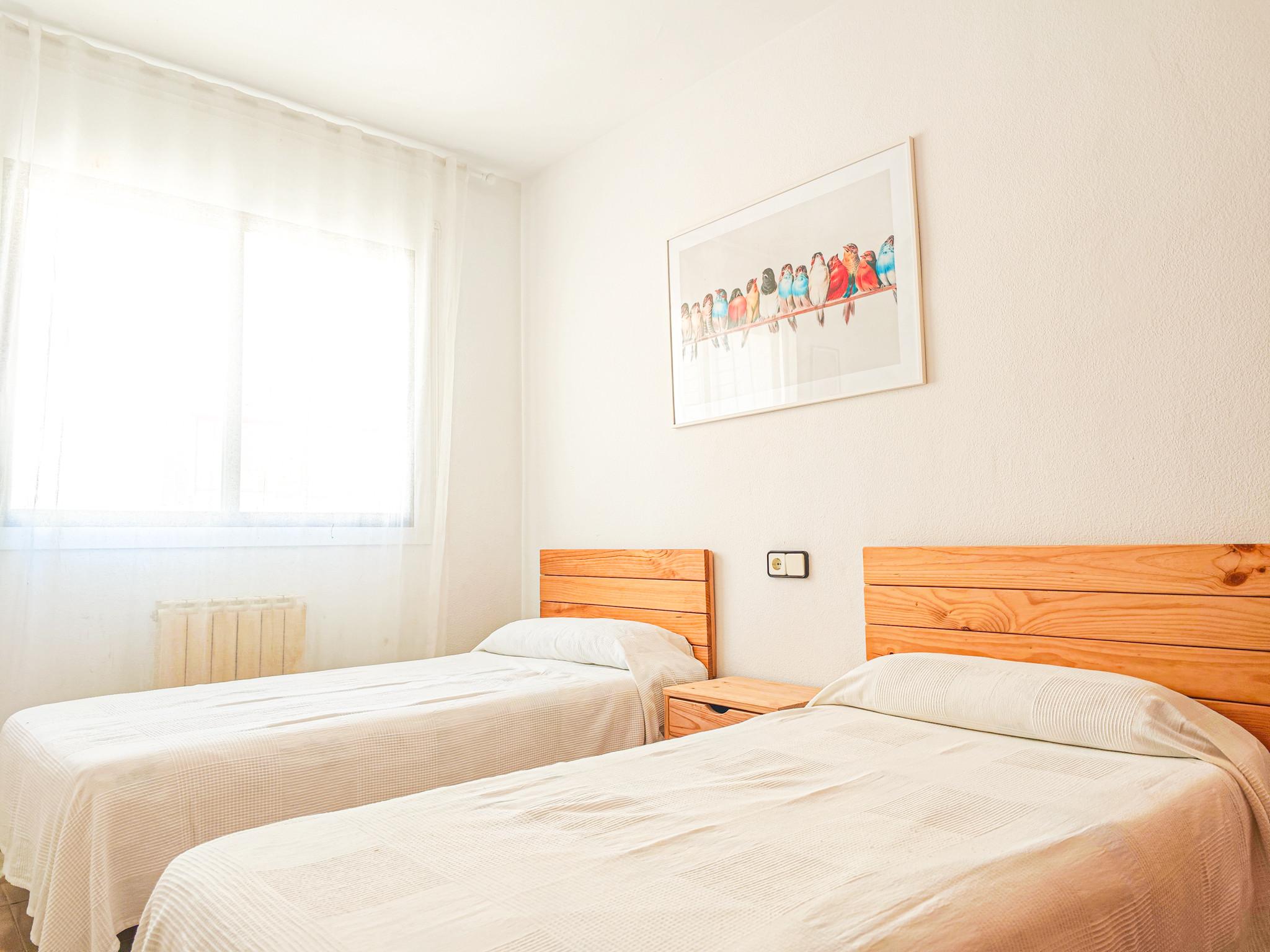 El apartameto cuenta con 4 dormitorios que pueden alojar hasta 8 personas, distribuidos con 1 cama doble, 6 camas individuales y 1 cama supletoria. Ideal para familias grandes que desean disfrutar juntos de sus vacaciones.