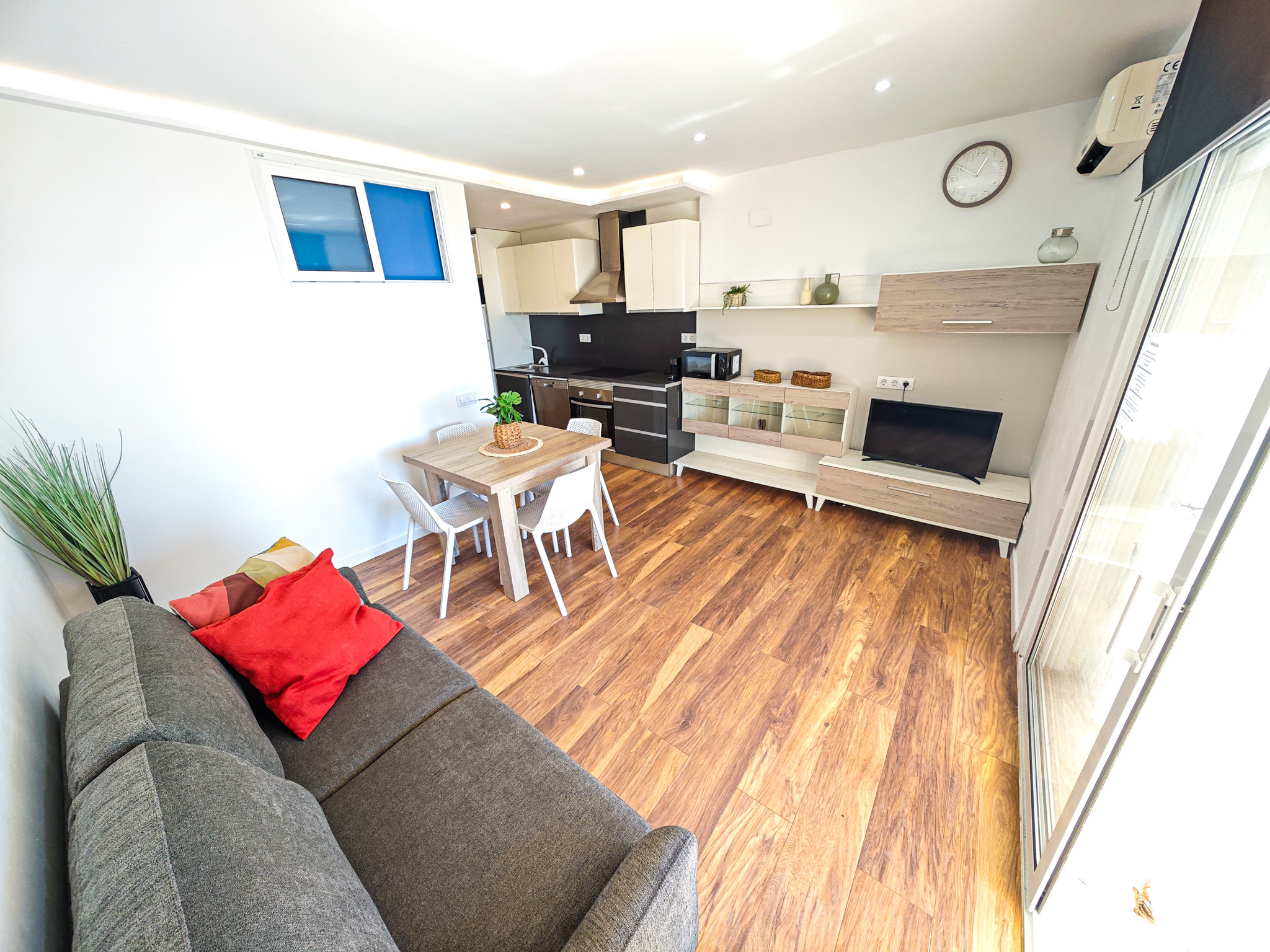 La ubicación y el apartamento muy acogedor con mobiliario minimalista bonito y muy práctico
