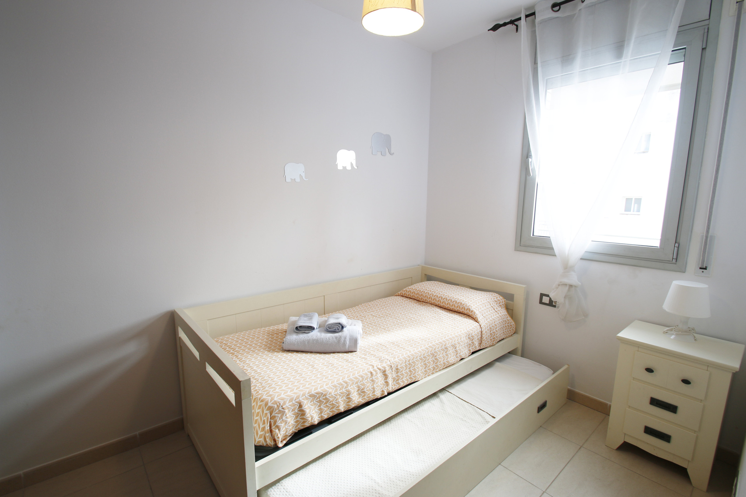 Diese gemütliche Unterkunft von 52 m² verfügt über ein Hauptschlafzimmer mit Doppelbett, ein zweites Schlafzimmer mit zwei Einzelbetten und ein helles Wohn-Esszimmer mit Schlafsofa. Das Badezimmer verfügt über eine Dusche und die Wohnung ist komplett ausgestattet, damit Sie sich wie zu Hause fühlen. Die offene Küche, praktisch und funktional, umfasst Glaskeramikkochfeld, Backofen, Mikrowelle, Geschirrspüler, Kühlschrank, Gefrierschrank, Kaffeemaschine, Toaster und das gesamte Geschirr, das für kurze oder lange Aufenthalte erforderlich ist. Darüber hinaus verfügt sie über WLAN, Klimaanlage und Heizung mit Wärmepumpe in der gesamten Unterkunft, Waschmaschine, Aufzug, überdachten Parkplatz im selben Gebäude und Gemeinschaftspool.