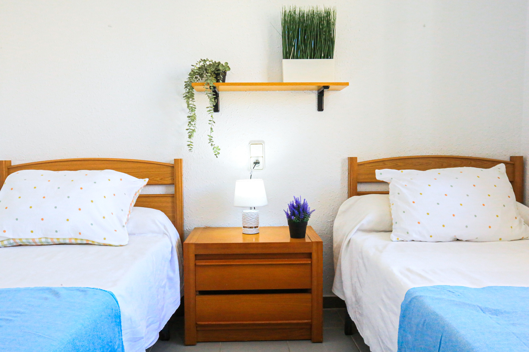 La ubicación es excelente. Sin tener que cruzar carretera para ir a la playa. A 10 minutos paseando del puerto y a 15 del barrio antic. Que tenga parking cubierto se agradece y está poco publicitado. El mantenimiento de la urbanización es muy bueno, los jardines en perfecto estado. La piscina limpia y amplia. Los colchones están muy bien, la terraza muy espaciosa.