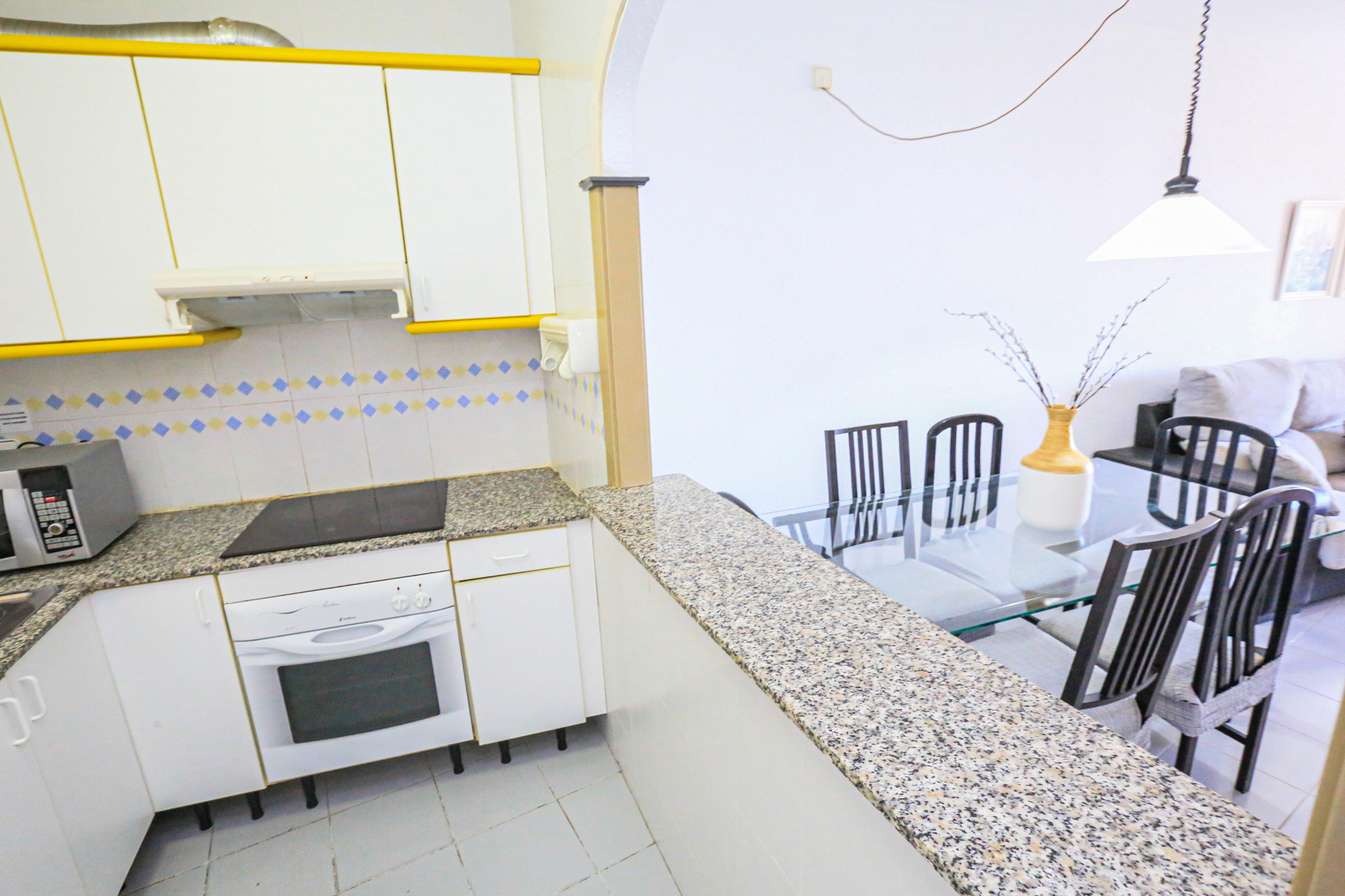 La mesa de la terraza está muy doblada hacia el centro y la de dentro es de cristal, que da miedo usar. Los utensilios de cocinar un poco escasos. El apartamento se ve que es viejo pero cumple su función para unos días