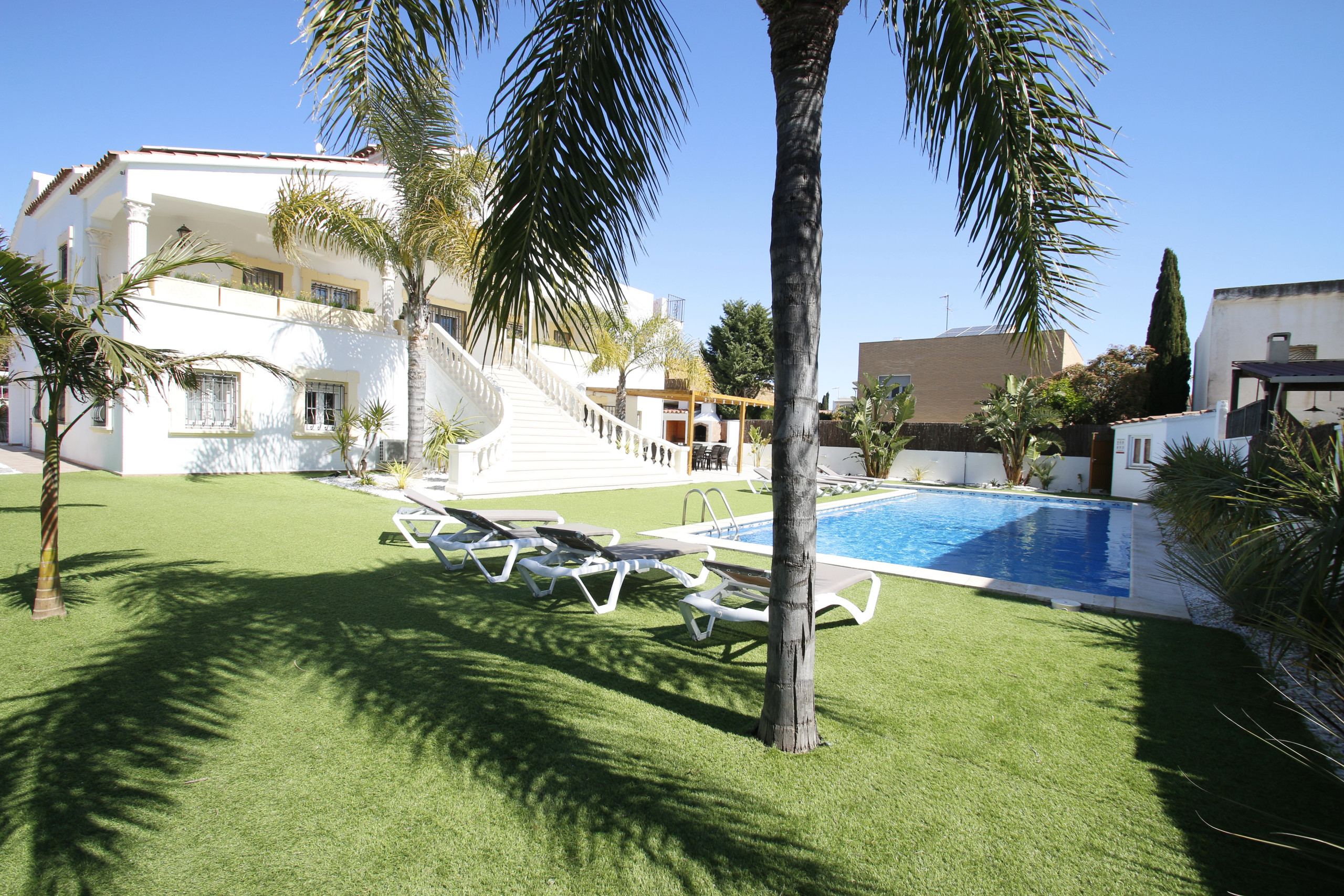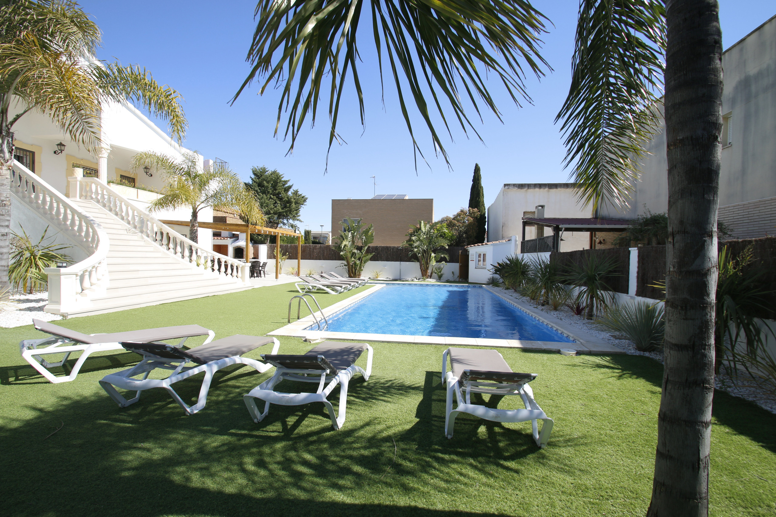 Ideal para ir con familia , situada en una zona muy tranquila , cerca de la zona comercial , playa y supermercado . Hemos disfrutado tanto los adultos como los niños de la preciosa piscina (refrescando-nos por la noche) y del bonito jardín. Volveremos sin duda alguna . Muchas gracias .