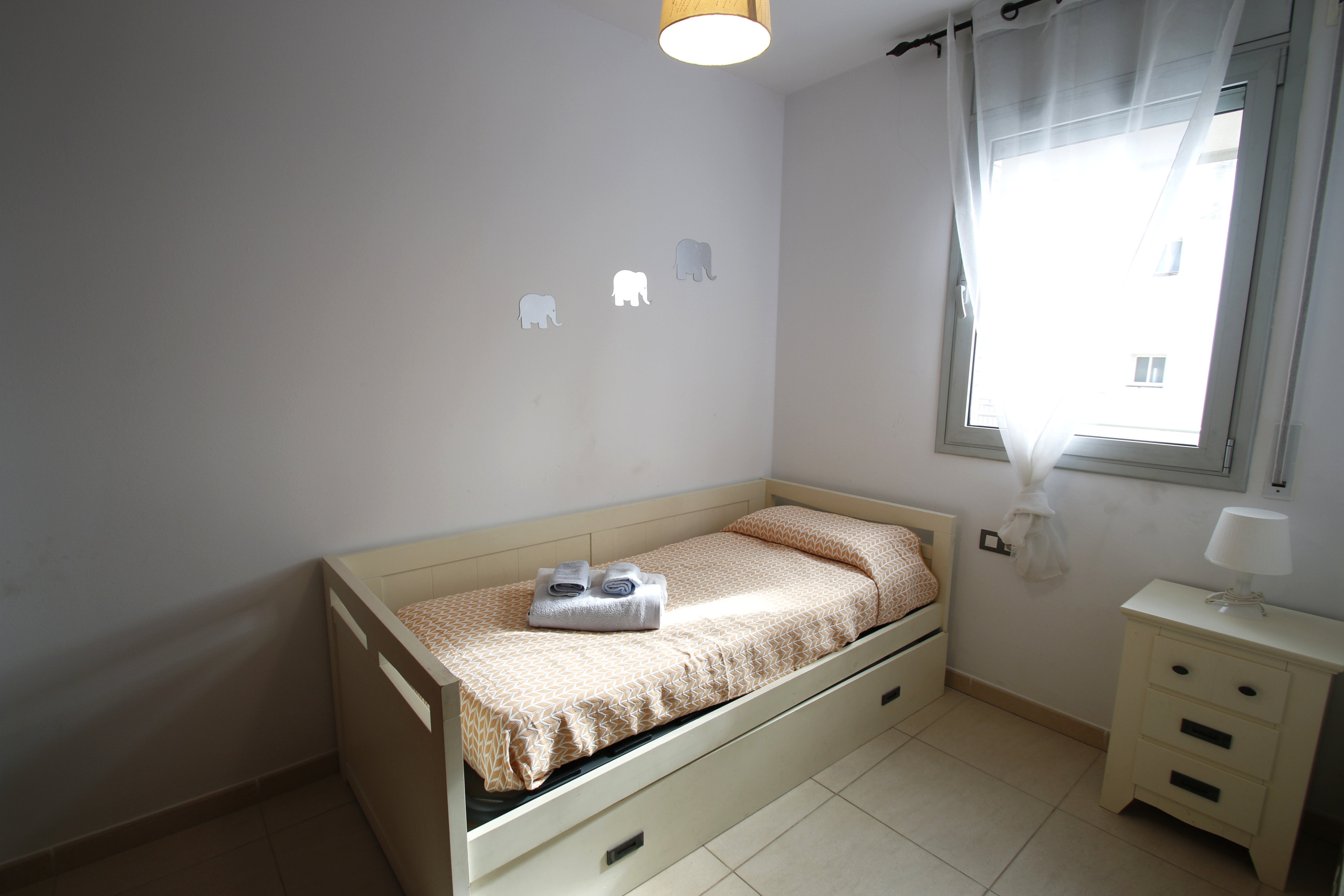 Ce logement confortable de 52 m² dispose d'une chambre principale avec un lit double, d'une deuxième chambre avec deux lits individuels et d'un salon-salle à manger lumineux avec un canapé-lit. La salle de bain est équipée d'une douche et le logement est entièrement équipé pour que vous vous sentiez comme chez vous. La cuisine américaine, pratique et fonctionnelle, comprend une plaque vitrocéramique, un four, un micro-ondes, un lave-vaisselle, un réfrigérateur, un congélateur, une cafetière, un grille-pain et tout l'équipement nécessaire pour des séjours courts ou longs. De plus, il dispose du wifi, de la climatisation et du chauffage par pompe à chaleur dans tout le logement, d'un lave-linge, d'un ascenseur, d'une place de parking couverte dans le même bâtiment et d'une piscine communautaire.