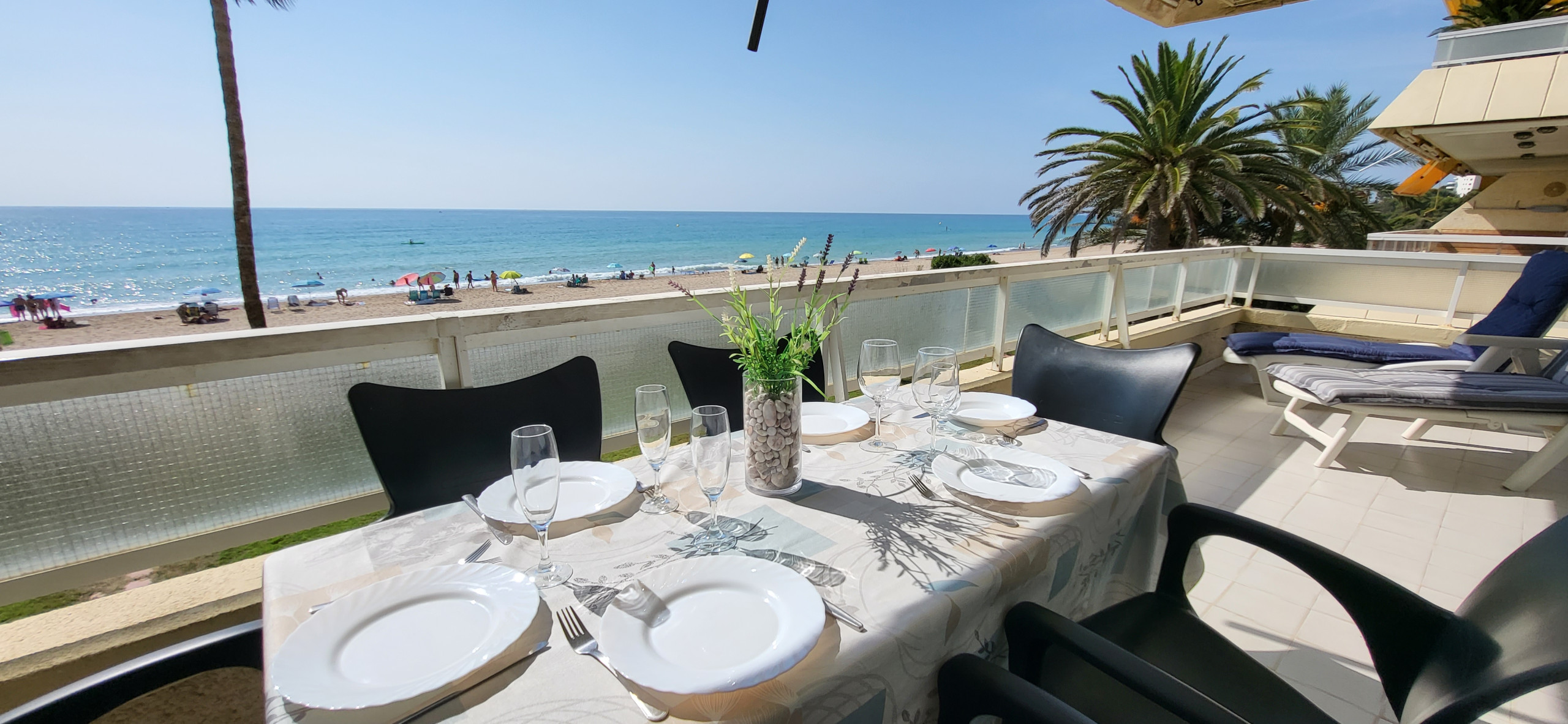 Appartement face mer avec une plage grande et propre accessible juste à la sortie de la résidence. Vue extra avec immense terrasse . Facile de garer sa voiture et de ne plus la prendre sauf pour faire les courses à 4 minutes. La piscine de la résidence est agréable et permet d’alterner avec la mer les jours de grand vent. Possible de marcher à pied jusqu’à Miami Platja en passant par le front de mer ( compter 50 minutes) Nous avons passé un excellent séjour de détente à la Villa Adriana.