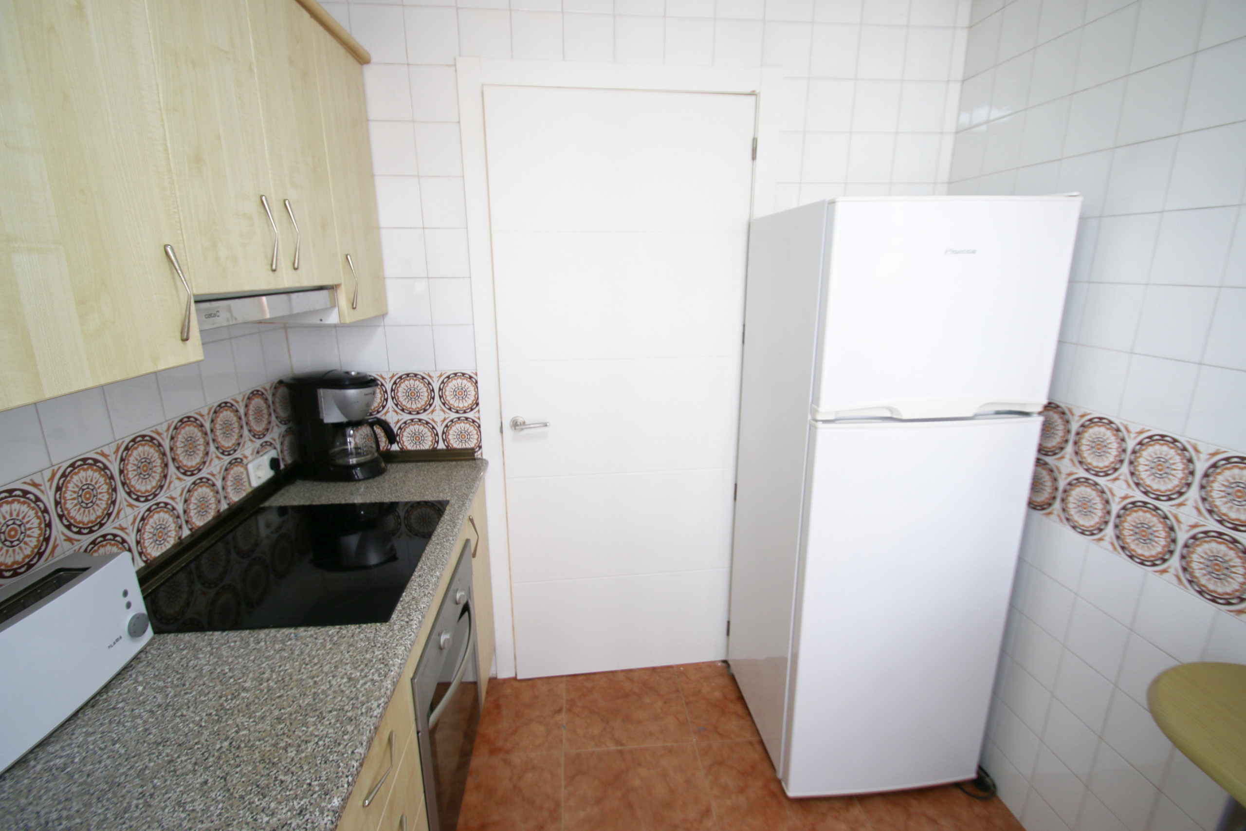 Кухня в Гольф-де-Сант-Жорди современная и оснащена духовкой, холодильником, микроволновкой и всеми необходимыми кухонными принадлежностями для всей семьи. Терраса с креслами и столом.