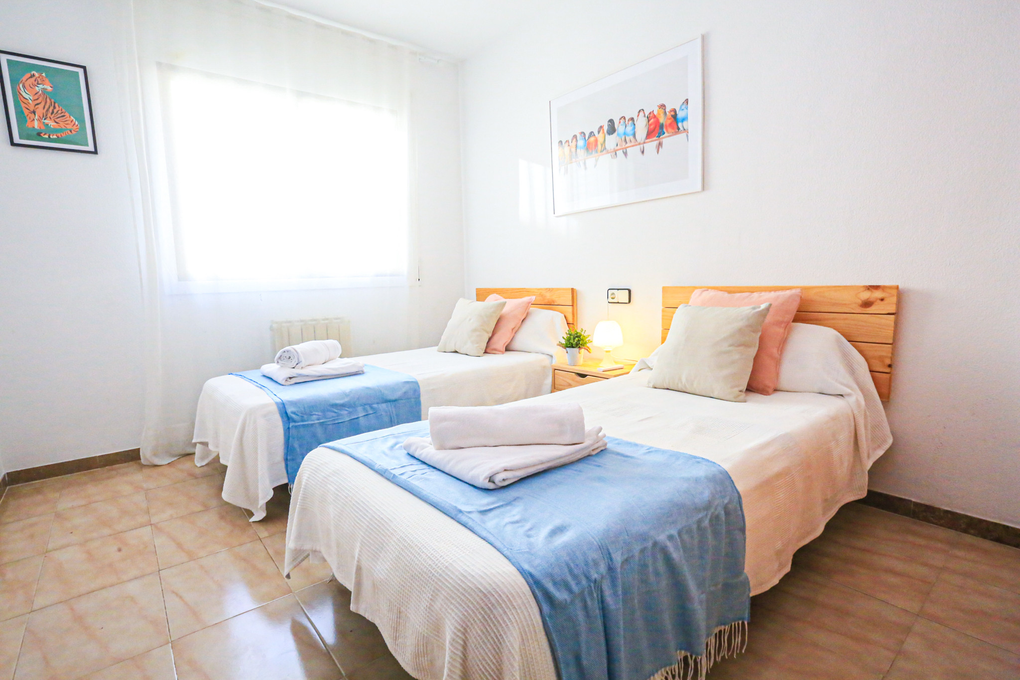 Квартира имеет 4 спальни, которые могут разместить до 8 человек, распределенные с 1 двуспальной кроватью, 6 одноместными кроватями и 1 дополнительной кроватью. Идеально подходит для больших семей, желающих вместе насладиться отпуском.